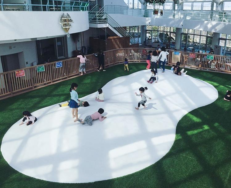 游樂場設備蹦蹦云形狀像白色云朵,似行云流水,尺度根據(jù)場地環(huán)境設計而成,外觀形狀不重復。可跳、可坐、可滑、可躺、合適親子家庭休閑游樂,沒有年紀約束。可根據(jù)整體場景定制,自由組合各種形式,簡約而不簡單;